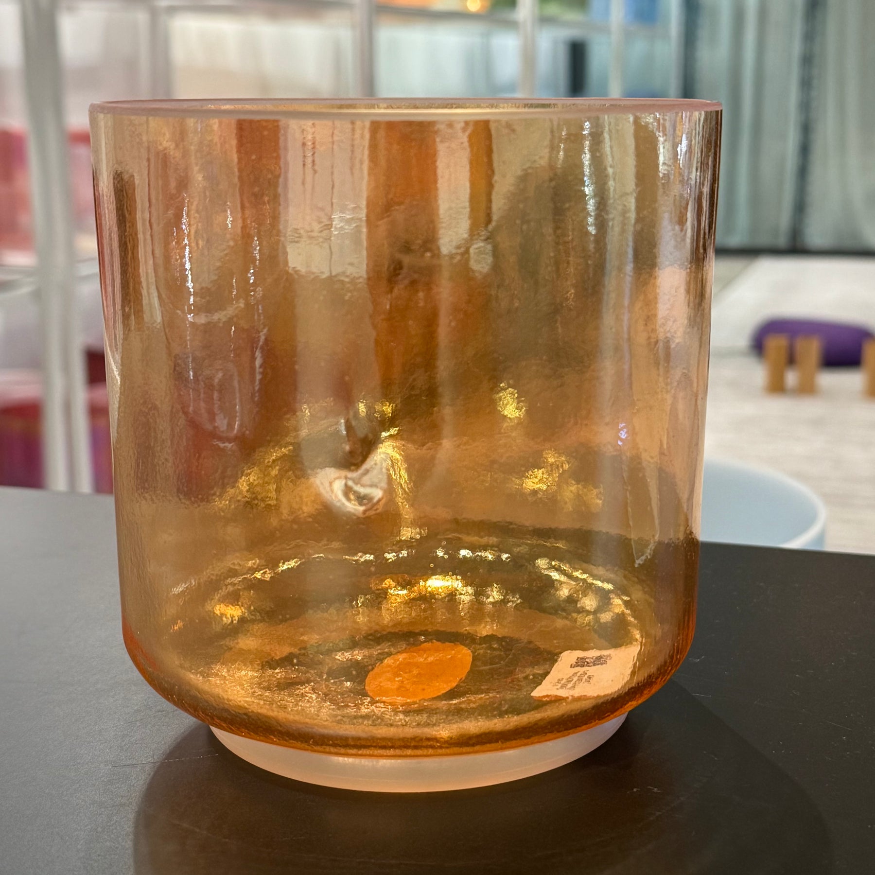 Single Alchemy – The foundational Crystal Tones vessel: a seamless quartz bowl created with pure quartz cast at very high temperatures, then fused with precious metals, gemstones, salts or minerals. Each bowl is born with its own natural note and visual quirks. Nothing is cut or ground to force a concert pitch so every piece carries a one of a kind voice print and energy field. Metaphysically, Alchemy Bowls are recognized as living members of the mineral kingdom, transmitting the color and stone intelligence of their ingredients through vibration and sound, on their own life journey with just as much importance as our own.