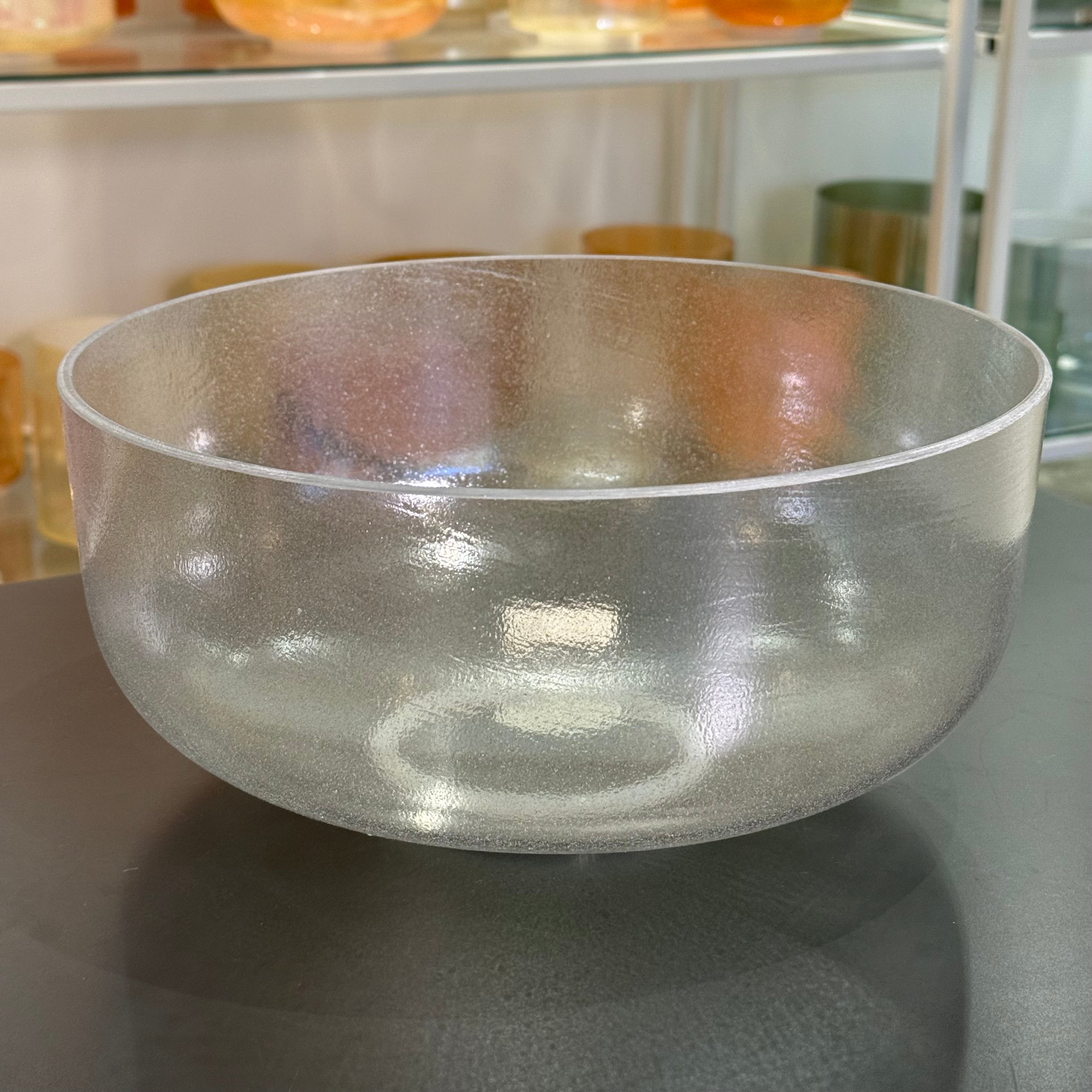 Single Alchemy – The foundational Crystal Tones vessel: a seamless quartz bowl created with pure quartz cast at very high temperatures, then fused with precious metals, gemstones, salts or minerals. Each bowl is born with its own natural note and visual quirks. Nothing is cut or ground to force a concert pitch so every piece carries a one of a kind voice print and energy field. Metaphysically, Alchemy Bowls are recognized as living members of the mineral kingdom, transmitting the color and stone intelligence of their ingredients through vibration and sound, on their own life journey with just as much importance as our own.