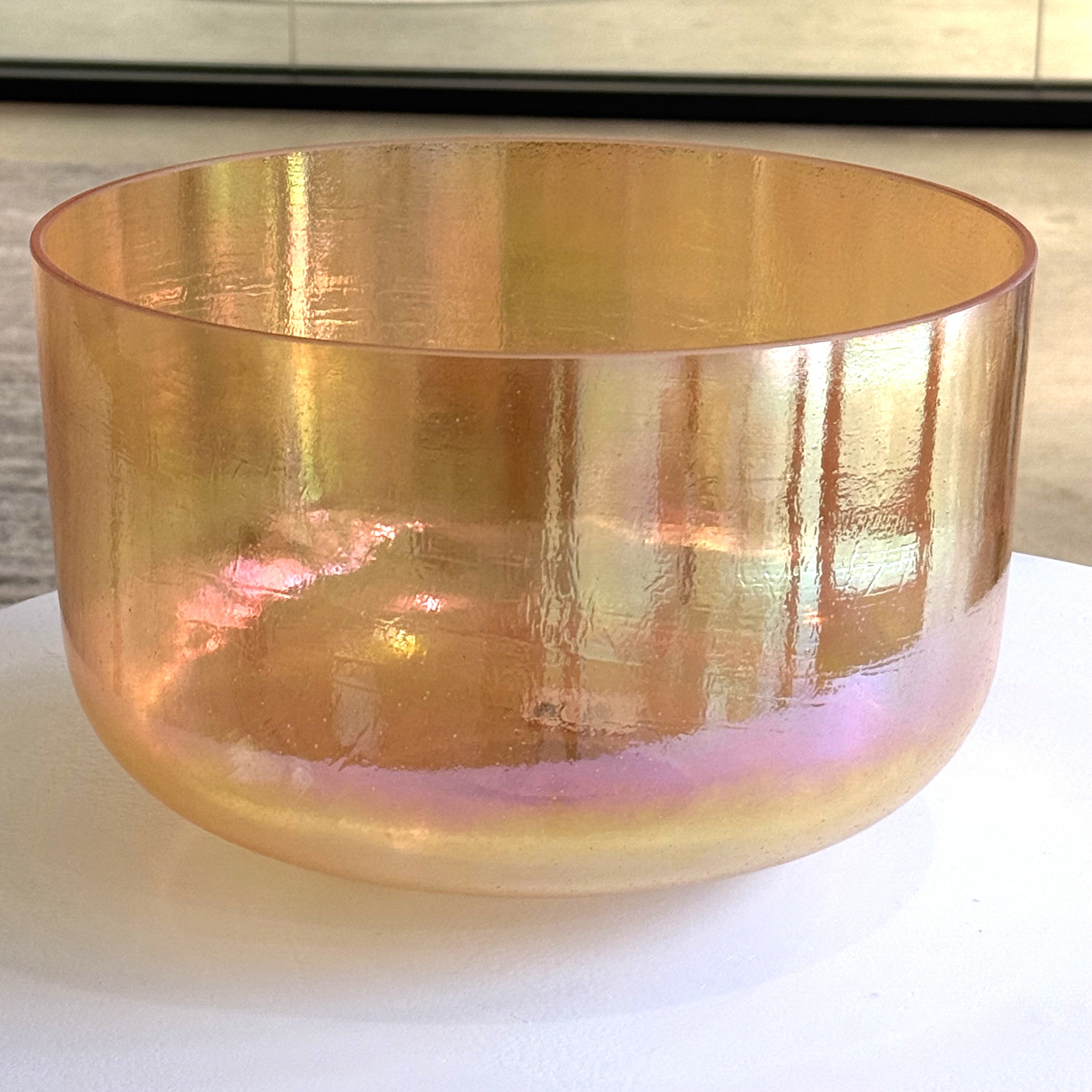Single Alchemy – The foundational Crystal Tones vessel: a seamless quartz bowl created with pure quartz cast at very high temperatures, then fused with precious metals, gemstones, salts or minerals. Each bowl is born with its own natural note and visual quirks. Nothing is cut or ground to force a concert pitch so every piece carries a one of a kind voice print and energy field. Metaphysically, Alchemy Bowls are recognized as living members of the mineral kingdom, transmitting the color and stone intelligence of their ingredients through vibration and sound, on their own life journey with just as much importance as our own.