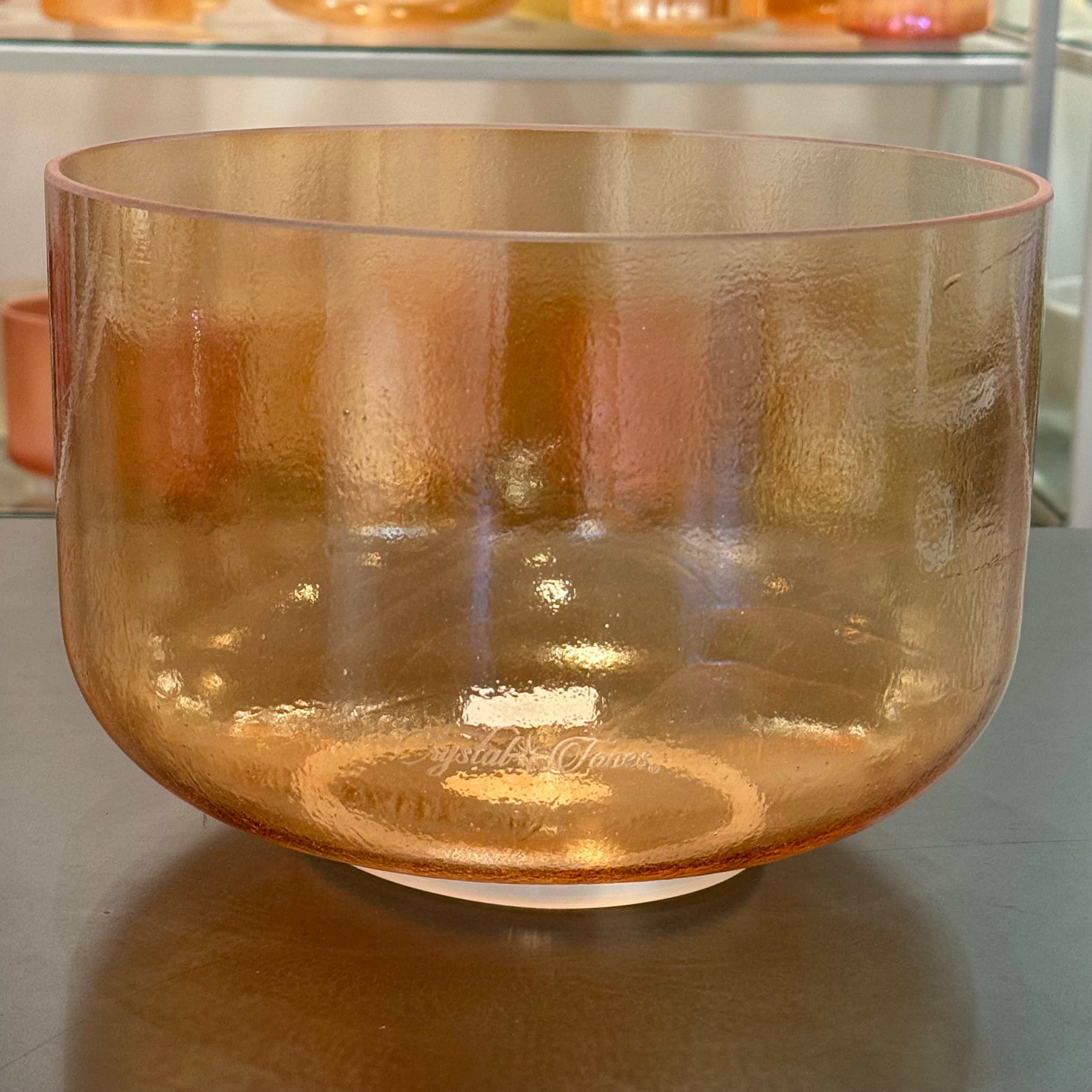 Single Alchemy – The foundational Crystal Tones vessel: a seamless quartz bowl created with pure quartz cast at very high temperatures, then fused with precious metals, gemstones, salts or minerals. Each bowl is born with its own natural note and visual quirks. Nothing is cut or ground to force a concert pitch so every piece carries a one of a kind voice print and energy field. Metaphysically, Alchemy Bowls are recognized as living members of the mineral kingdom, transmitting the color and stone intelligence of their ingredients through vibration and sound, on their own life journey with just as much importance as our own.