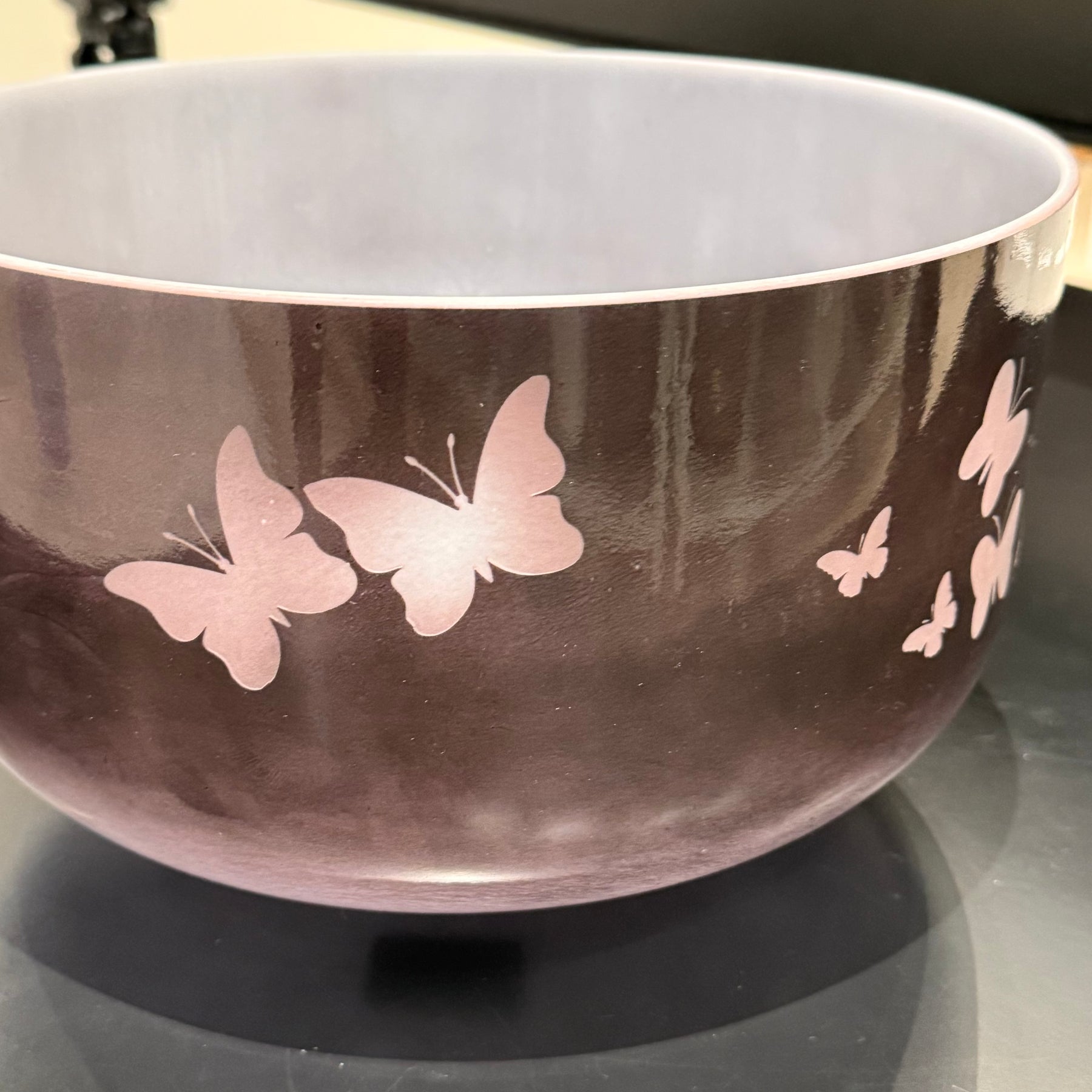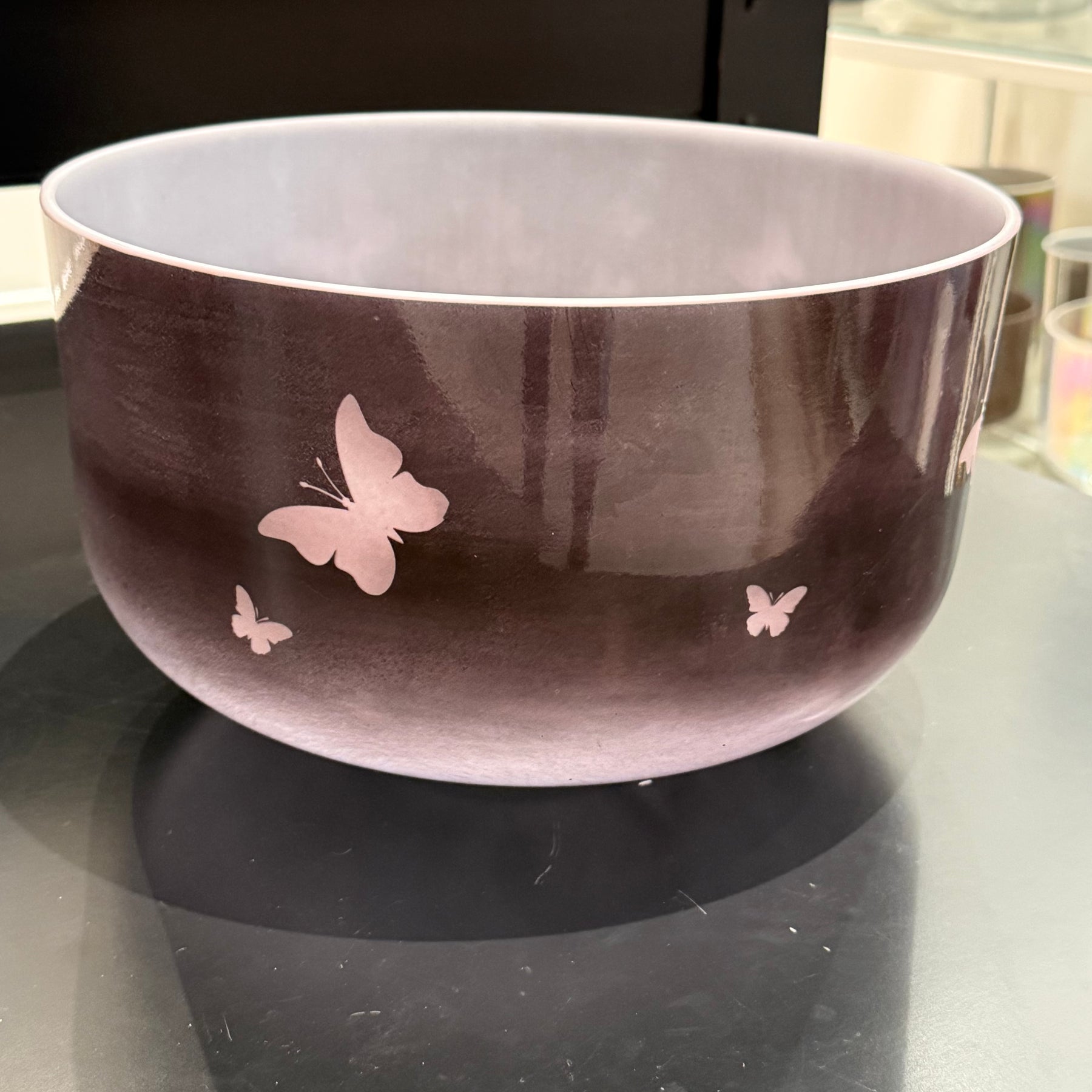 12" G#+15 Kunzite W/ Medium Etched Butterflies 142897 Crystal Tones® Alchemy Crystal Singing Bowl