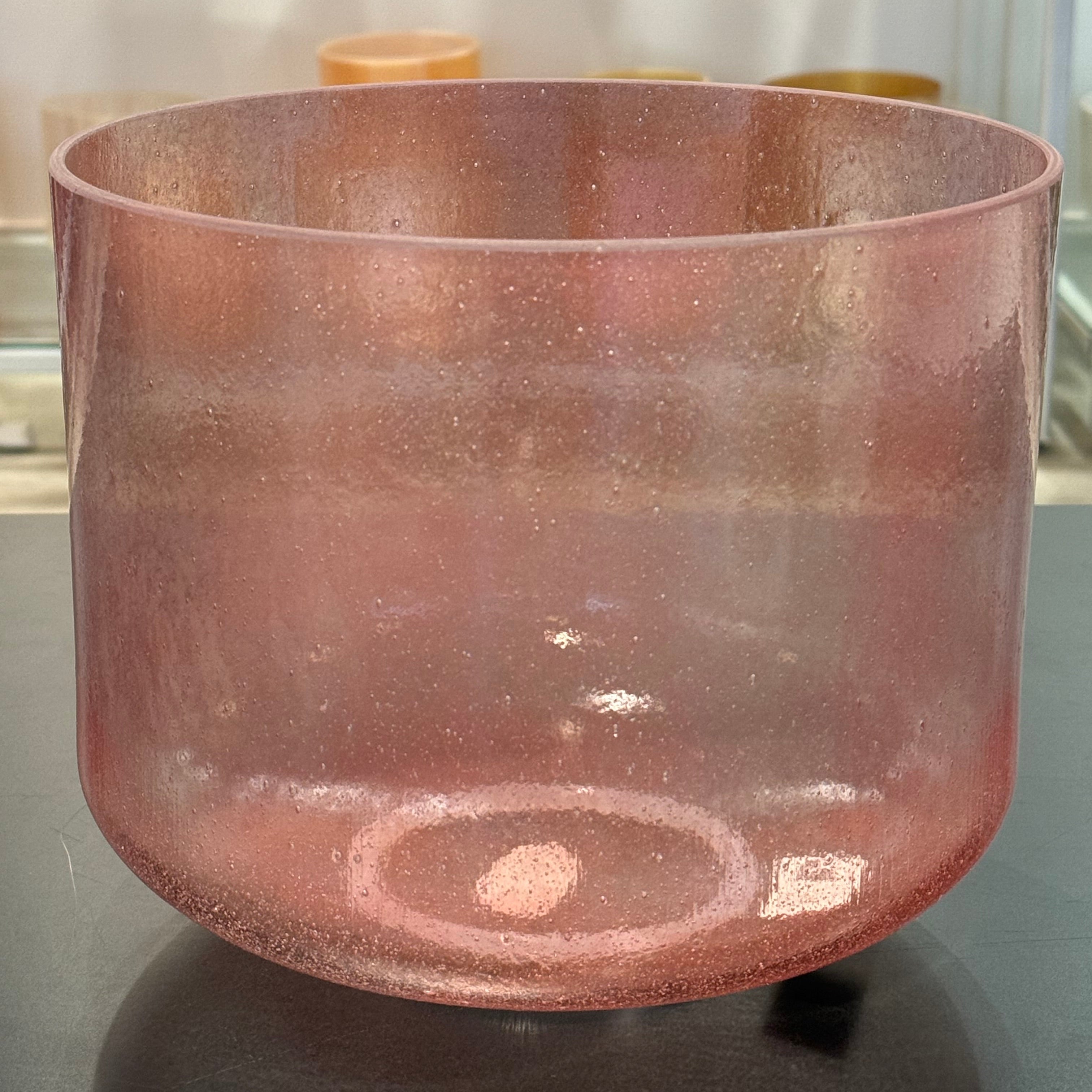 Single Alchemy – The foundational Crystal Tones vessel: a seamless quartz bowl created with pure quartz cast at very high temperatures, then fused with precious metals, gemstones, salts or minerals. Each bowl is born with its own natural note and visual quirks. Nothing is cut or ground to force a concert pitch so every piece carries a one of a kind voice print and energy field. Metaphysically, Alchemy Bowls are recognized as living members of the mineral kingdom, transmitting the color and stone intelligence of their ingredients through vibration and sound, on their own life journey with just as much importance as our own.