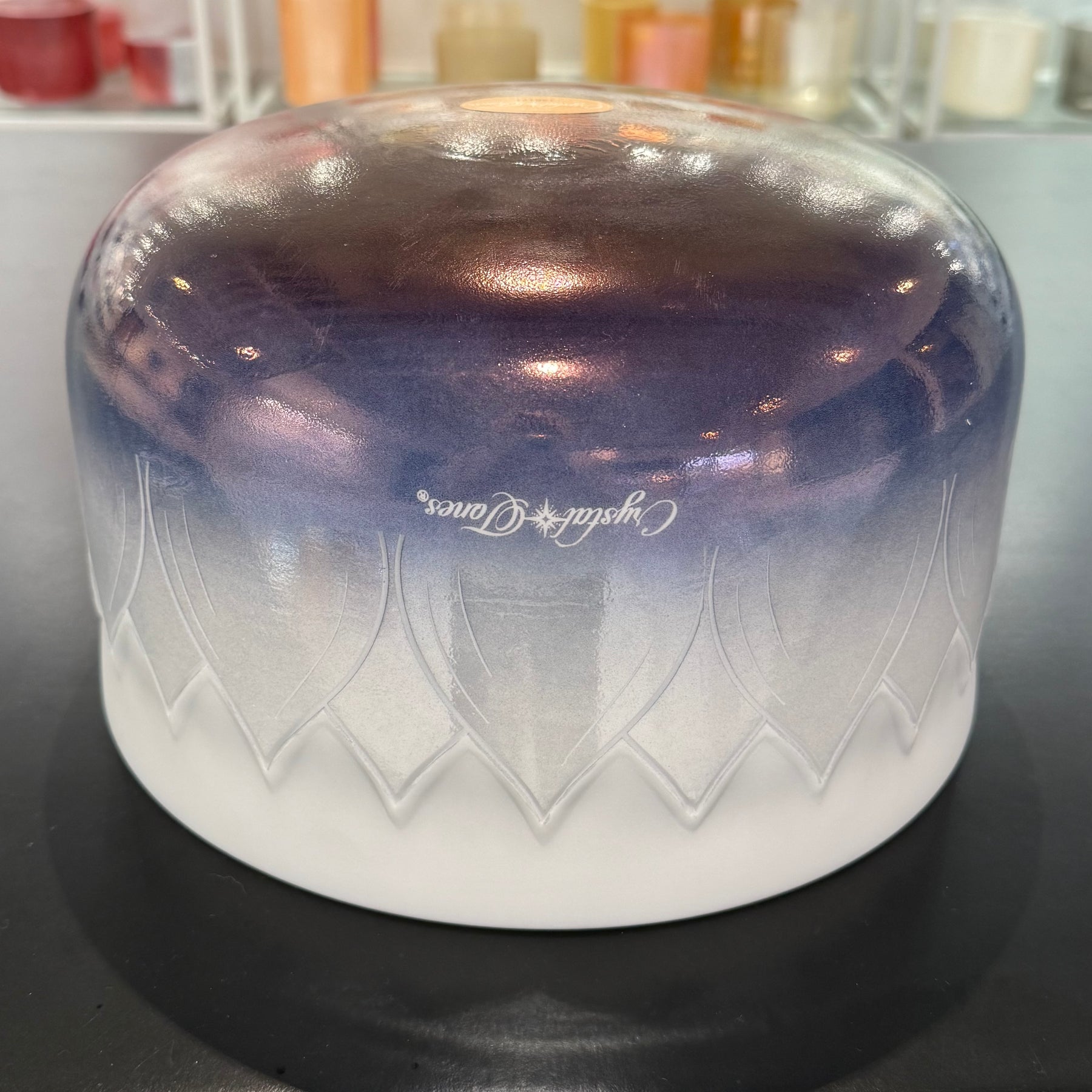 12" G#+15 White Light Angel Gold, Violet Ocean Gold (Base), W/ Intricate Etched Lotus Flower, Frosted Rim, Frosted Inside 158171 Crystal Tones® Alchemy Crystal Singing Bowl