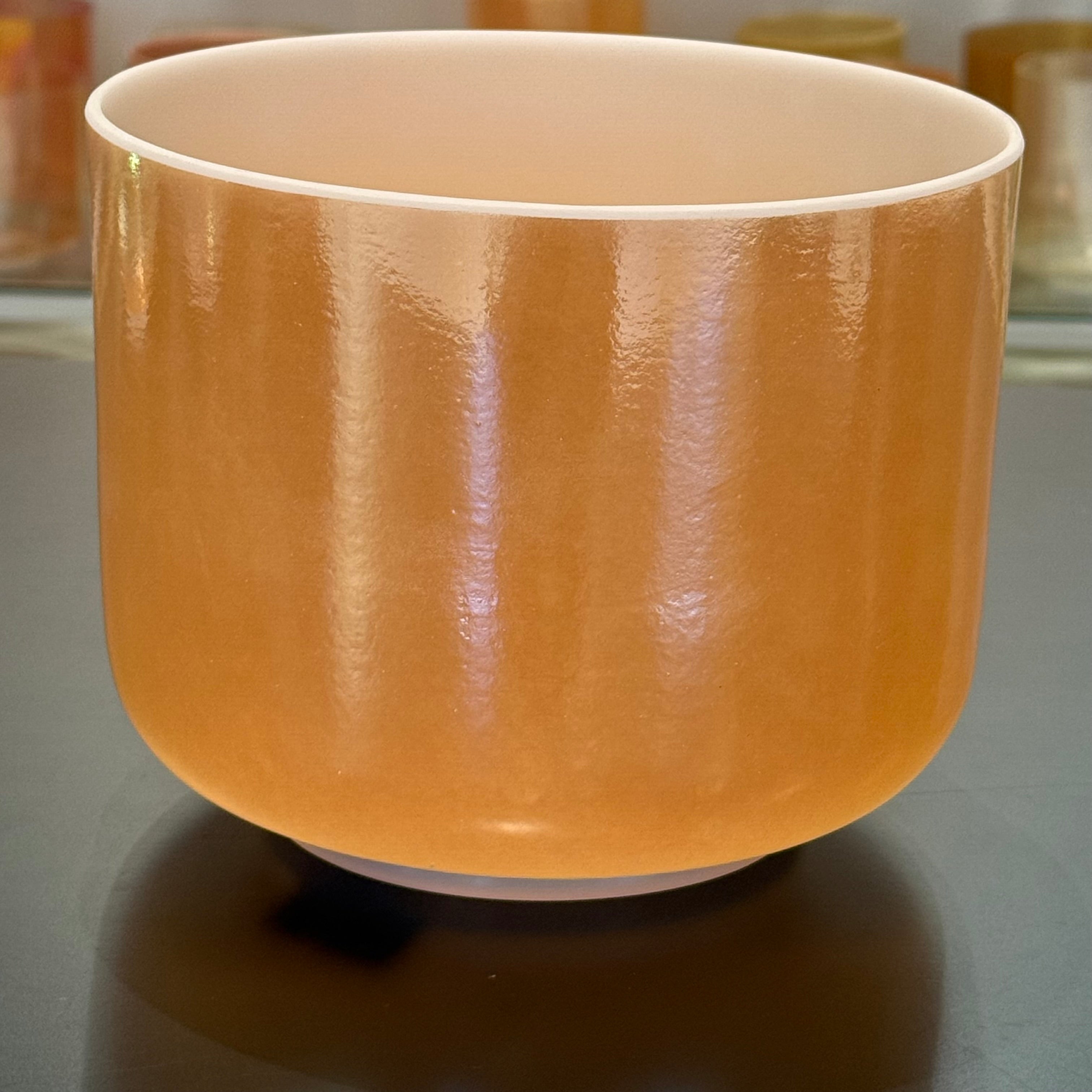 Single Alchemy – The foundational Crystal Tones vessel: a seamless quartz bowl created with pure quartz cast at very high temperatures, then fused with precious metals, gemstones, salts or minerals. Each bowl is born with its own natural note and visual quirks. Nothing is cut or ground to force a concert pitch so every piece carries a one of a kind voice print and energy field. Metaphysically, Alchemy Bowls are recognized as living members of the mineral kingdom, transmitting the color and stone intelligence of their ingredients through vibration and sound, on their own life journey with just as much importance as our own.